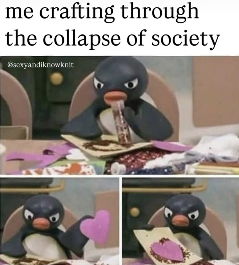 *Pingu here is performing a certain gender-coded failure. But craft isn't just about pouring glitter on your anger and powerlessness in this world