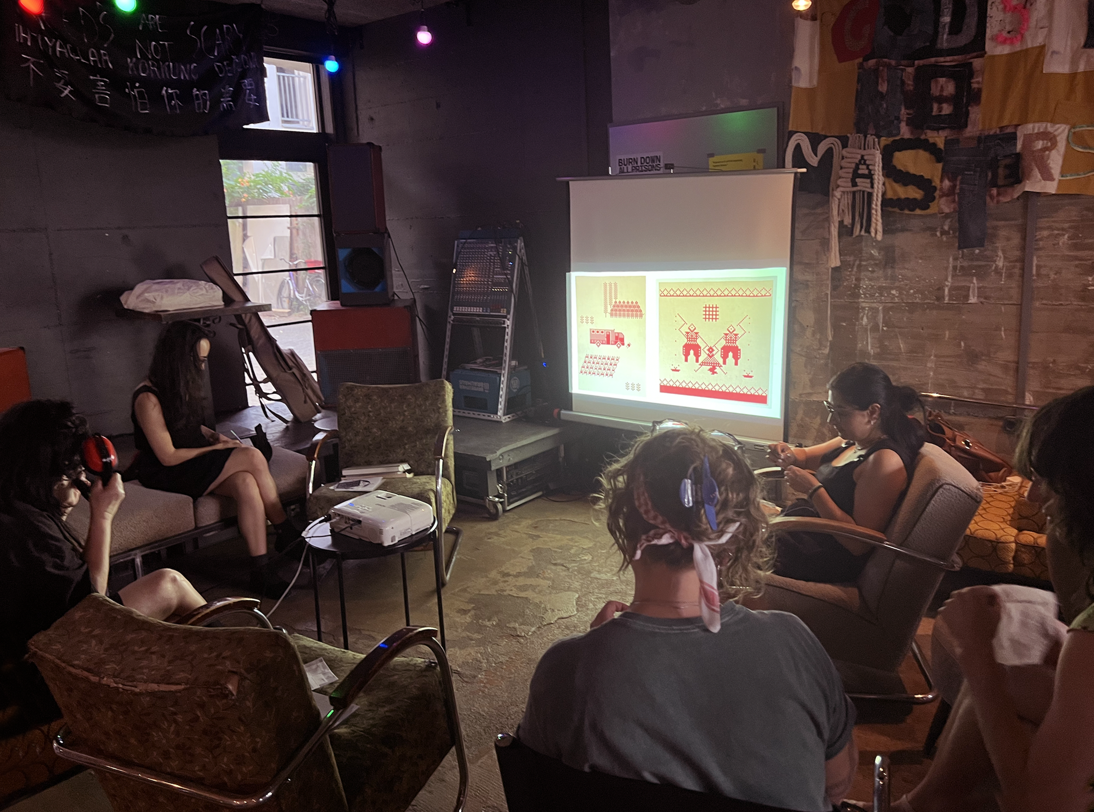 Part free-school lectures on radical textiles, part sewing skill-share, part collective embroidery practice which took place over three sessions in July and August 2025.