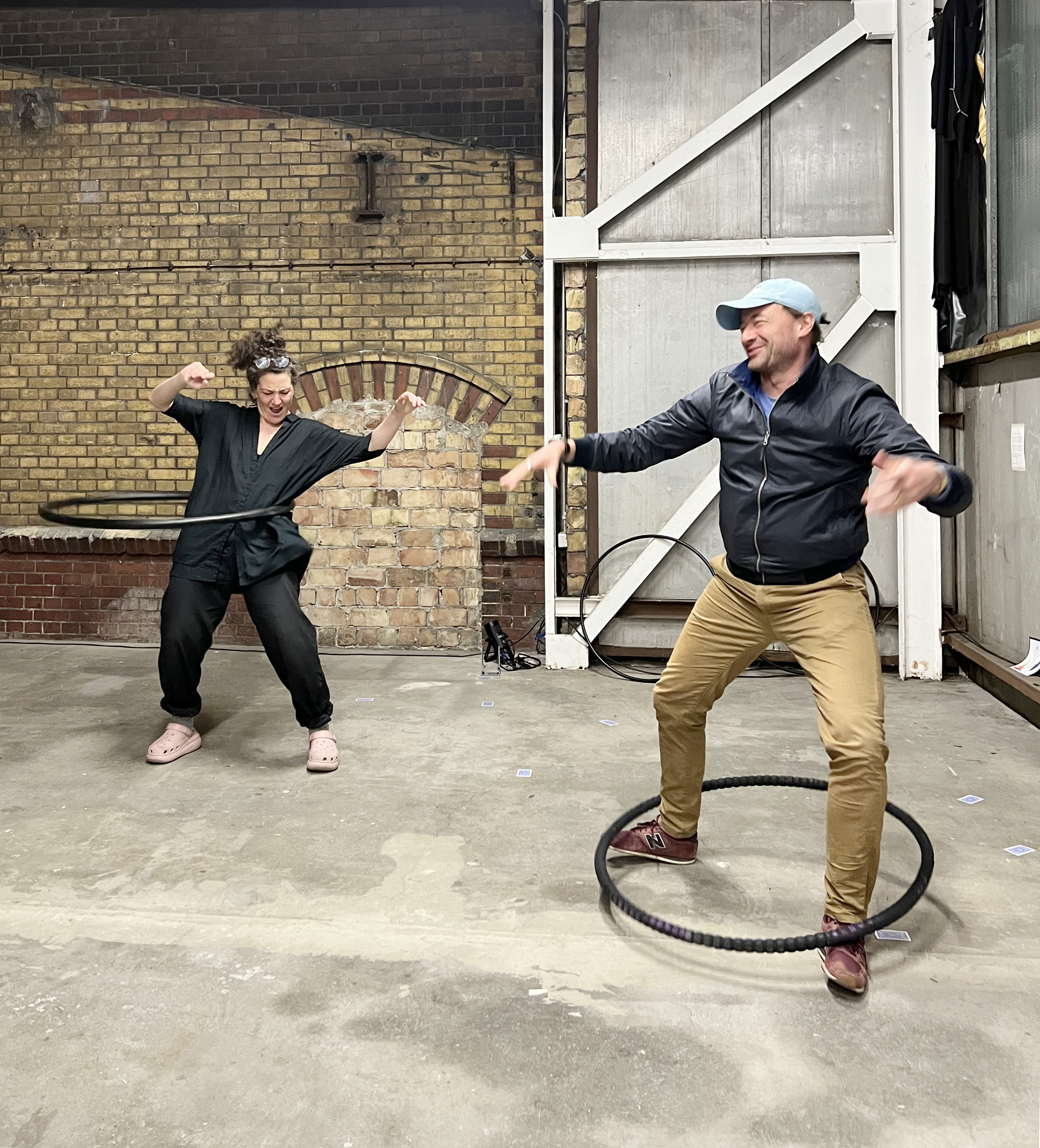 The hula hoops are an extension of the star exercise. They invite movement and are a way of physically enacting the attempt at centeredness and groundedness.